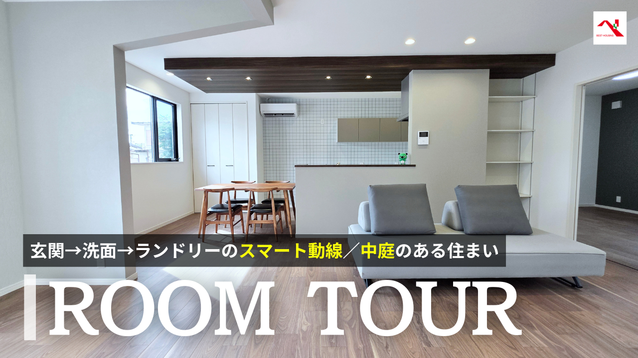 【ルームツアー/間取り付き】玄関→洗面→ランドリーのスマート動線/中庭のある住まい|浜松市中央区泉3丁目21期B号地