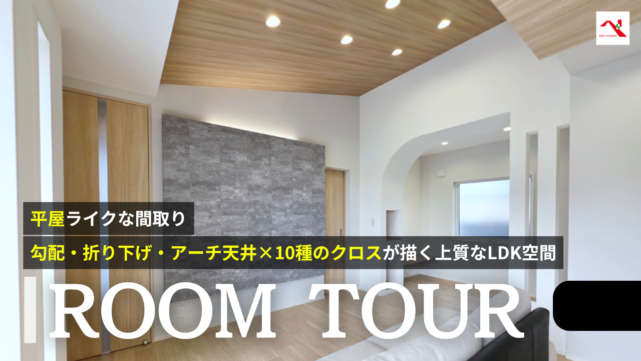 【ルームツアー/間取り付き】設計士のこだわり住宅/勾配・折り下げ・アーチ天井×10種のクロスが描く上質なLDK空間/平屋ライクな間取り/浜松市中央区西ヶ崎町4期