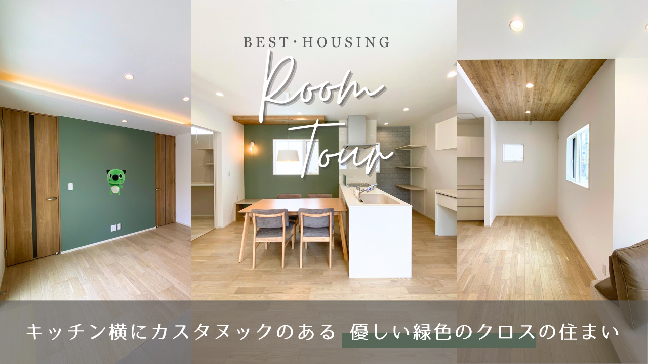 【ルームツアー】キッチン横にカスタヌックのある、優しい緑色のクロスの住まい