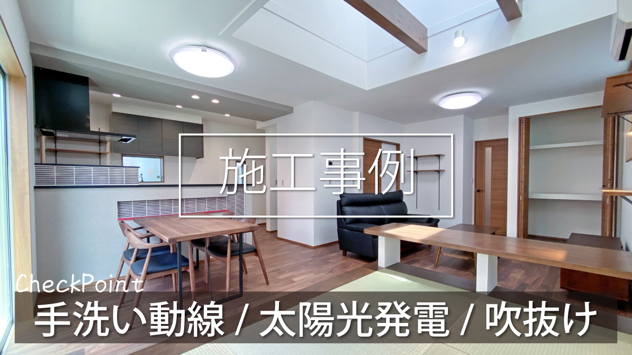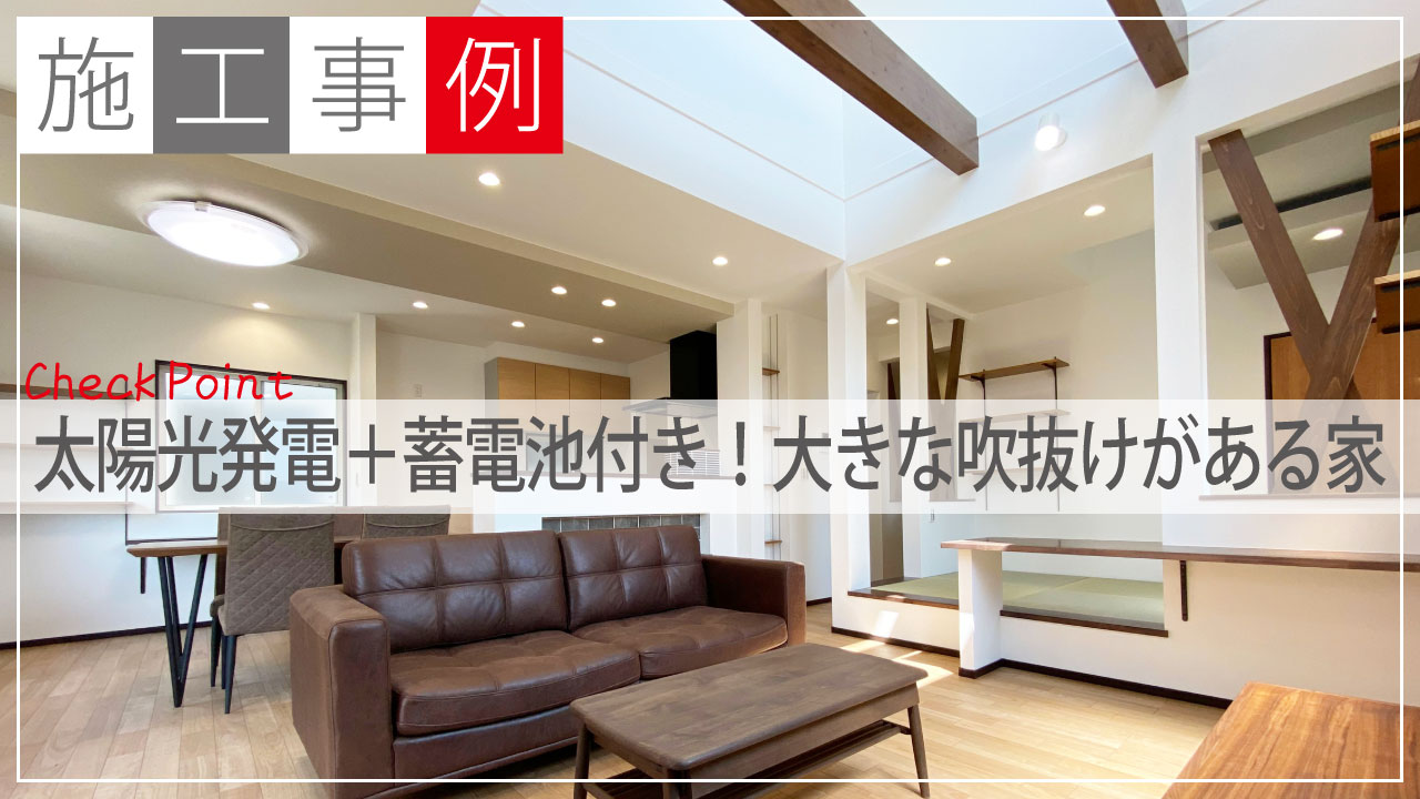 【建築実例】太陽光発電+蓄電池付き!大きな吹抜けをもつ和コーナー併せて22帖を超えるLDKの住まい