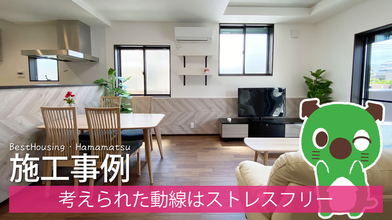 【建築実例】玄関からリビングを通らずに水まわりへ向かえる3LDKのお家