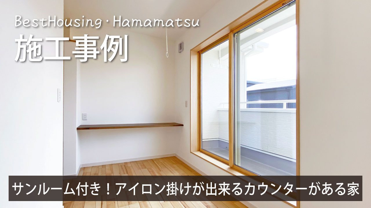 【建築実例】サンルーム付き!アイロン掛けが出来るカウンターを設置した住まい