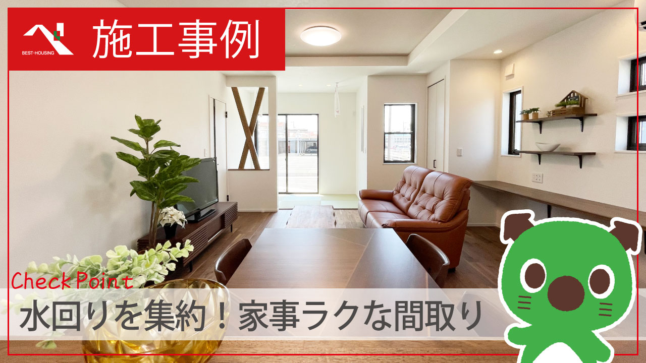 【建築実例】キッチンから浴室まで水まわりを一直線に配置した3LDKの住まい